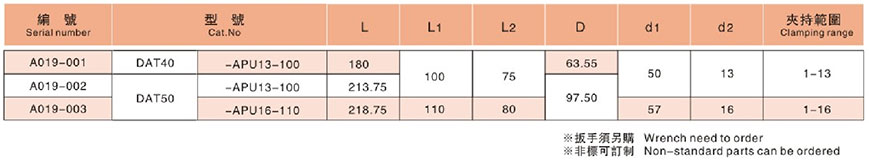 您當前的位置:雙陽首頁 - 產品中心 - 數控刀柄系統 - DAT(JT)-APU壹式鉆夾頭