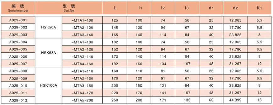 HSK(A)/MTA莫氏鉆頭套筒