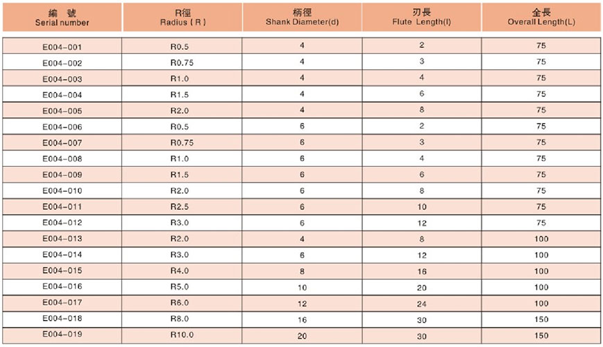 長(zhǎng)柄型4刃球頭銑刀